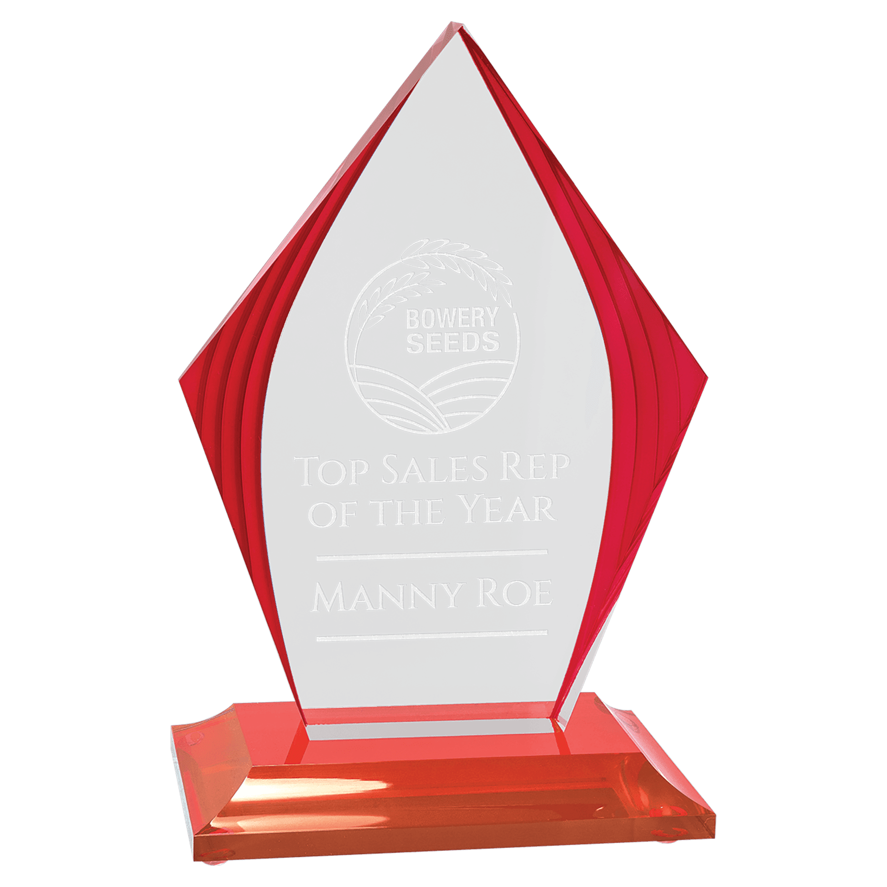 Acrylic Awards – Flame Series – 3/4″ thick red or blue accented upright and base in multiple sizes.