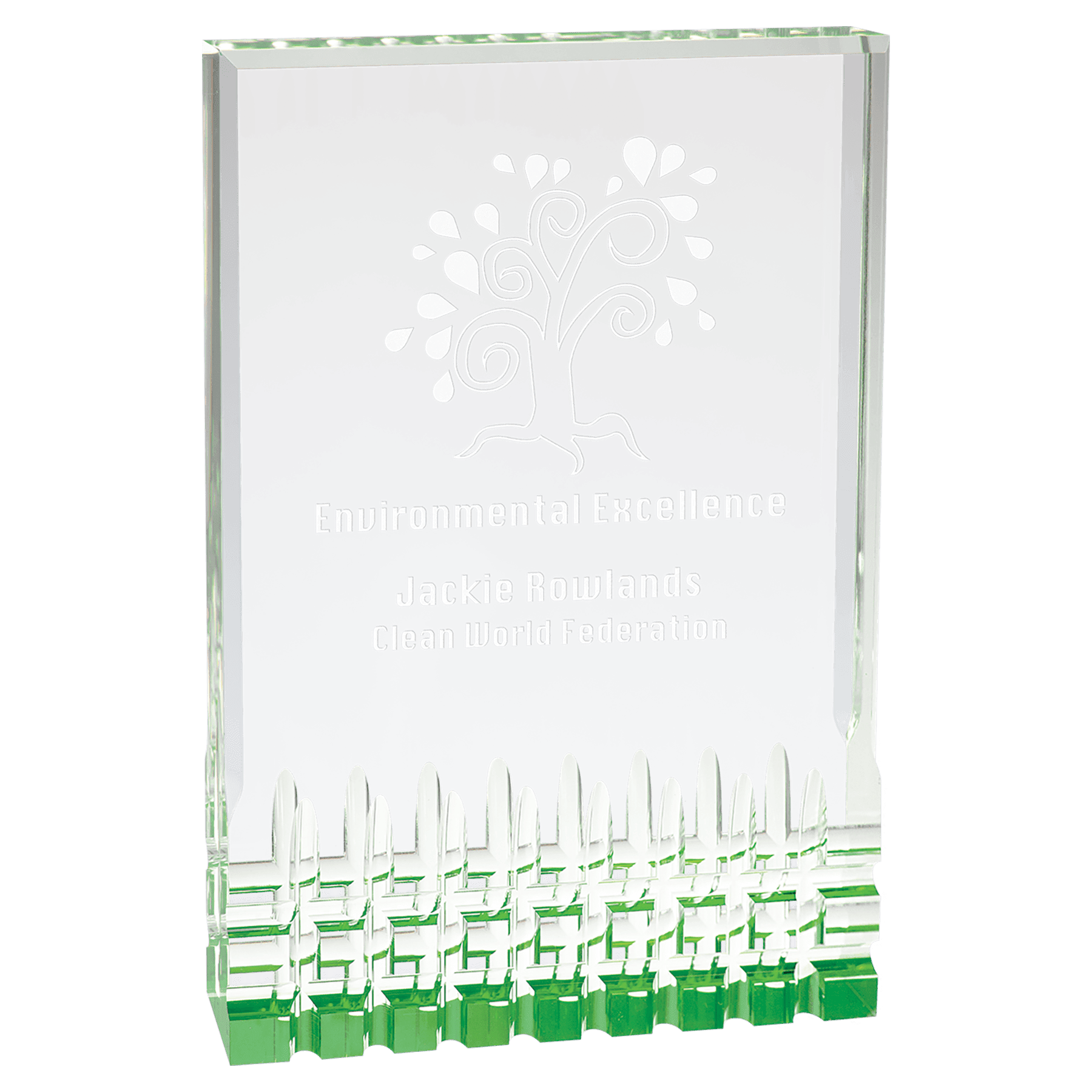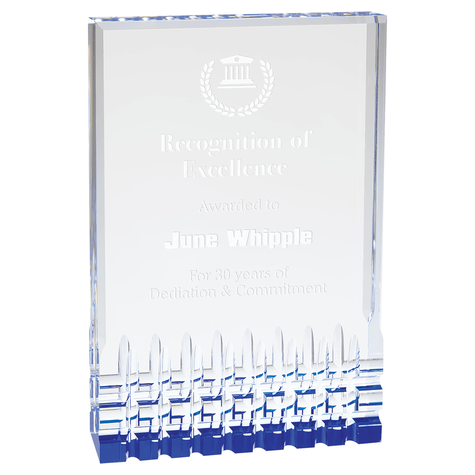 Premier Acrylic is the ultimate way to recognize and honor. Mirage Acrylics come in 4 different sizes and colors- blue, gold, green and red with a clear engraving area.