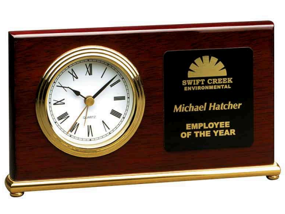 7 1/2" x 4" Rosewood Piano Finish Horizontal Desk Clock